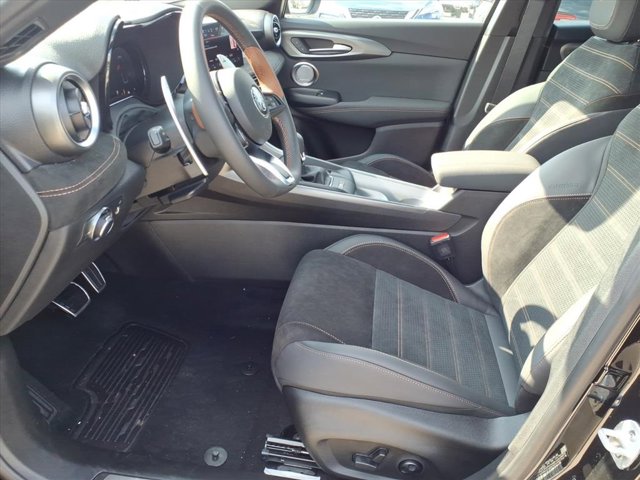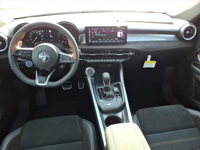Scores 29 Highway MPG and 21 City MPG! This Alfa Romeo Tonale delivers a Intercooled Turbo Premium Unleaded I-4 2.0 L/122 engine powering this Automatic transmission. QUICK ORDER PACKAGE 23F INTENSA -inc: ParkSense Front/Rear/Side Park Assist, Surround View Camera System, Aluminum Steering Column Mounted Paddle Shifters, Veloce Aluminum Door Sills, Hands Free Power Liftgate, Auto-Dimming Rear Exterior Mirrors, Ambient Lighting Package, Gloss Black Painted DLO, Driver Seat Memory, Power Liftgate, Leather Wrapped Steering Wheel, Calipers Black w/Gold Script, NEW SADDLE/BLACK, PERFORATED ALCANTARA SEAT, ALFA BLACK.*This Alfa Romeo Tonale Comes Equipped with These Options *Wheels: 20 x 8.0 Black-Gold Aluminum, Voice Recorder, Vinyl Door Trim Insert, Valet Function, Urethane Gear Shifter Material, Unspecified Tire Brand, Trip Computer, Transmission: 9-Speed 948TE Automatic, Transmission w/Driver Selectable Mode, Tracker System.